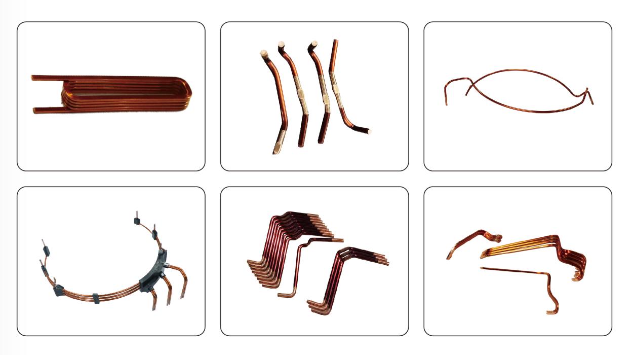 第二招:【專用工裝+精準剝漆,破解精度難題】 針對漆包線特性設計的專用成型卷曲工裝,輕柔呵護線材表面,最大限度減少對漆包線絕緣表面的壓傷、刮傷,確保線圈絕緣性能完好無損。獨立控制的剝漆系統,深度長度精準可調,確保每一次折彎和剝漆都分毫不差;